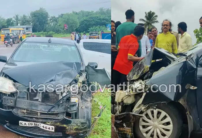 Keywords: Accident, Nellikkatta, Badiadka, Injured, Kasaragod, Adkatsthala, Damage, School, Bus, Car, School bus collides car.