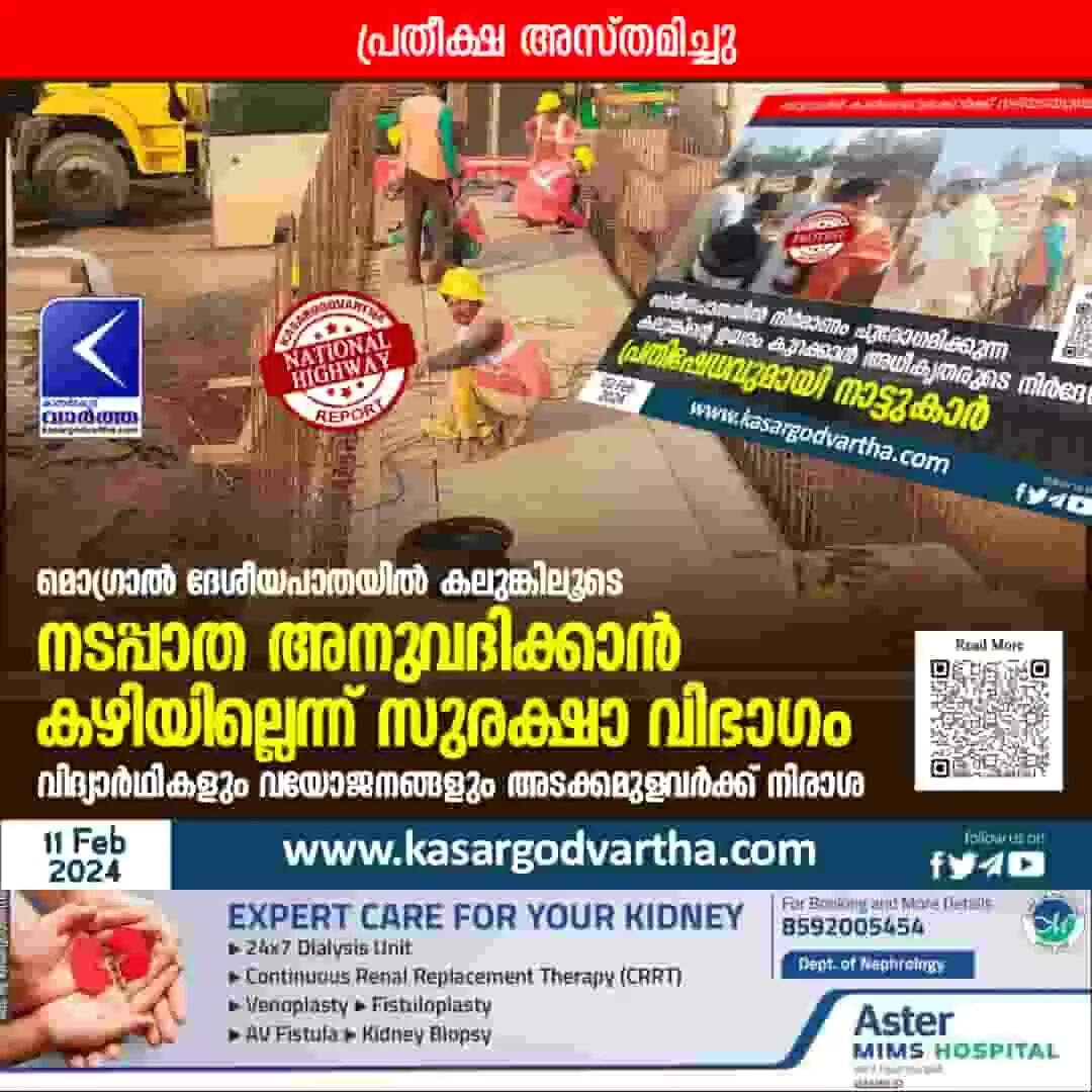 Keywords : News, Top-Headlines, Malayalam-News, Kasargod, Kasaragod-News, Kerala, Kerala-News, Security department said that footpath cannot be allowed through culvert on Mogral National Highway.
