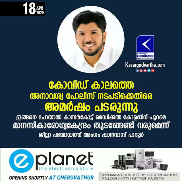 കോവിഡ് കാലത്തെ അനാവശ്യ പോലീസ് നടപടിക്കെതിരെ അമര്‍ഷം പടരുന്നു; ഇങ്ങനെ പോയാല്‍ കാസര്‍കോട്ട് മെഡിക്കല്‍ കോളജിന് പുറമെ മാനസികാരോഗ്യകേന്ദ്രം തുടങ്ങേണ്ടി വരുമെന്ന് ജില്ലാ പഞ്ചായത്ത് അംഗം ഷാനവാസ് പാദൂര്‍