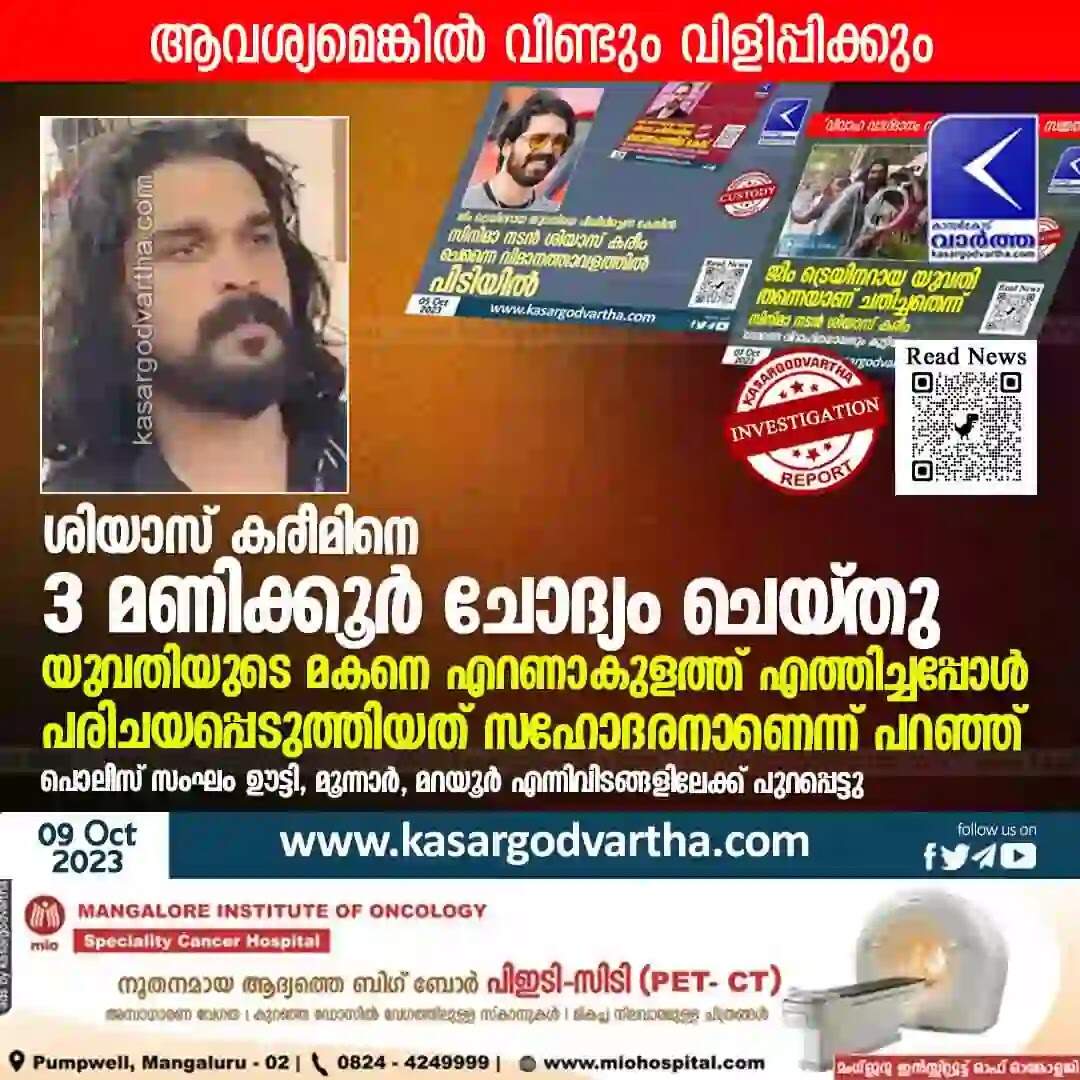 Investigation | ശിയാസ് കരീമിനെ 3 മണിക്കൂർ ചോദ്യം ചെയ്തു; യുവതിയുടെ മകനെ എറണാകുളത്ത് എത്തിച്ചപ്പോൾ പരിചയപ്പെടുത്തിയത് സഹോദരനാണെന്ന് പറഞ്ഞ്; പൊലീസ് സംഘം ഊട്ടി, മൂന്നാർ, മറയൂർ എന്നിവിടങ്ങളിലേക്ക് പുറപ്പെട്ടു