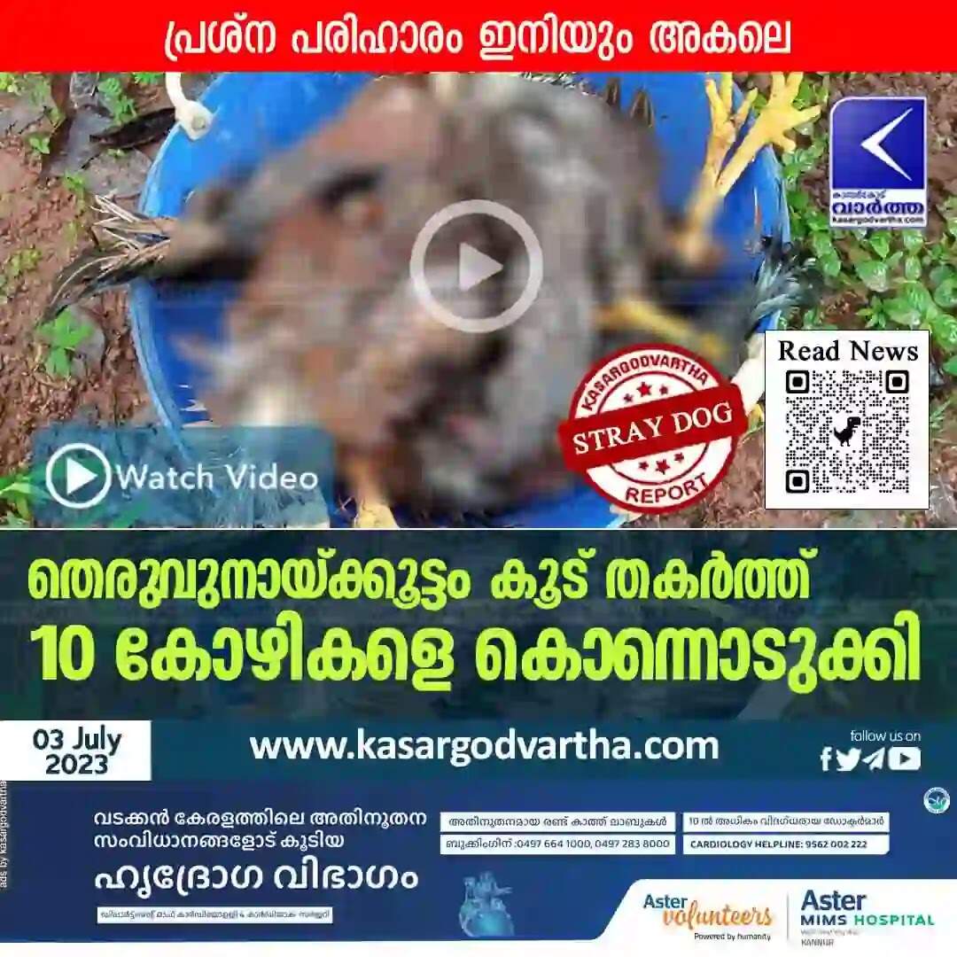 Keywords: News, Uduma, Kasaragod, Kerala, Stray Dog, Stray dogs killed 10 chicken in Udma.