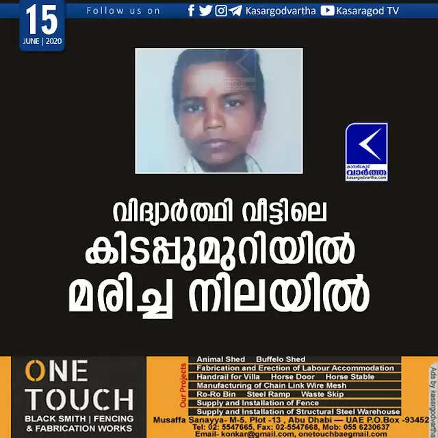 Keywords: Kasaragod, Kerala, news, Death, Student, Top-Headlines, Student found dead in House
