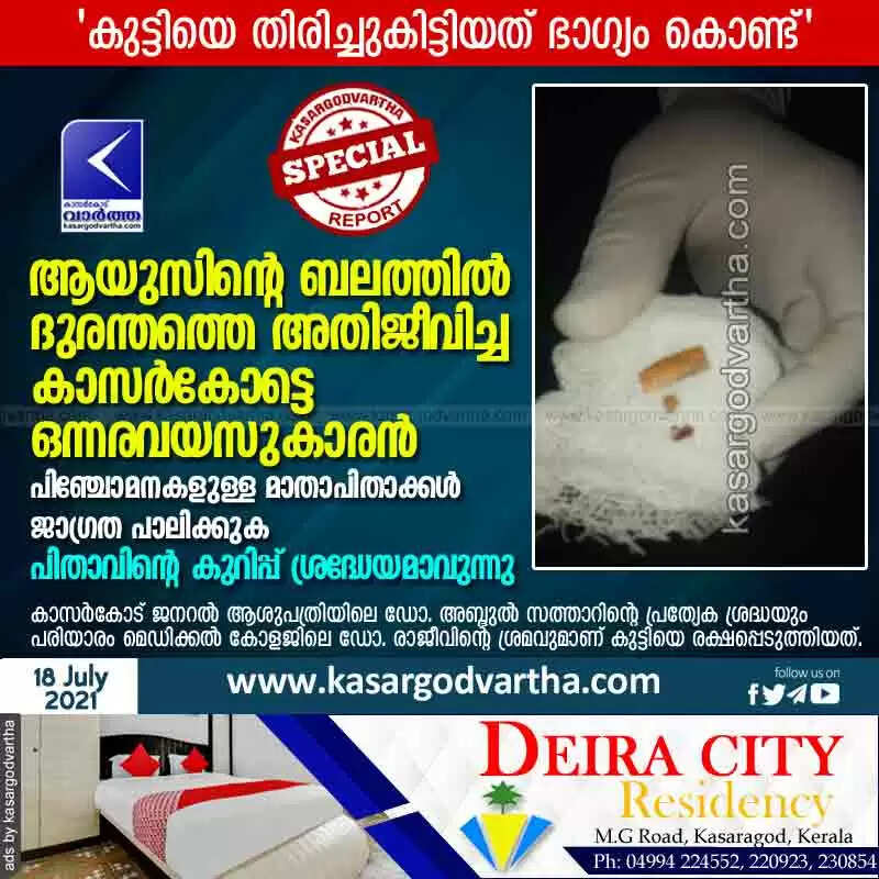 ആയുസിന്റെ ബലത്തിൽ ദുരന്തത്തെ അതിജീവിച്ച കാസര്‍കോട്ടെ ഒന്നരവയസുകാരൻ; പിഞ്ചോമനകളുള്ള മാതാപിതാക്കൾ ജാഗ്രത പാലിക്കുക; പിതാവിന്റെ കുറിപ്പ് ശ്രദ്ധേയമാവുന്നു