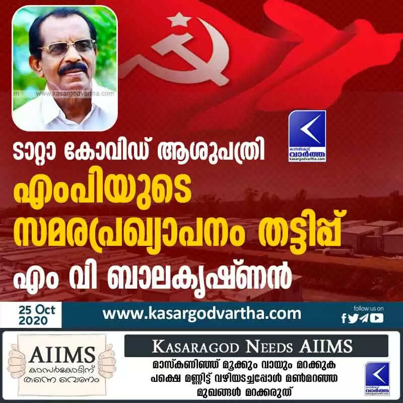 ടാറ്റാ കോവിഡ് ആശുപത്രി:എംപിയുടെ സമരപ്രഖ്യാപനം തട്ടിപ്പ്: എം വി ബാലകൃഷ്ണന്
