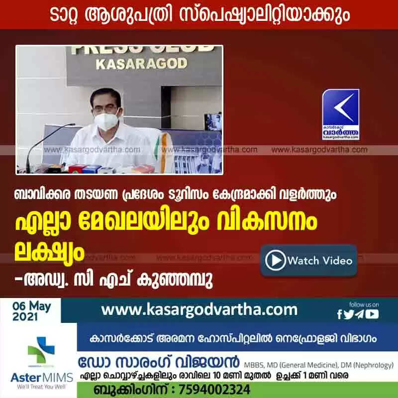 Keywords: Kasaragod, Kerala, News, Hospital, Treatment, Tourism, Top-Headlines, Tata Hospital will be specialty and Bavikkara dam area will be developed as tourism hub- Adv. CH Kunhambu.