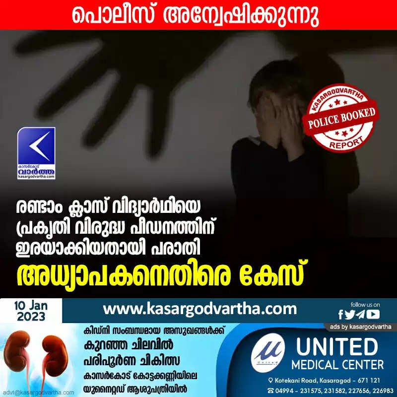 Keywords: Latest-News, Top-Headlines, Police, Case, Kasaragod, Registration, Investigation,  Teacher assaults student, booked under POCSO.