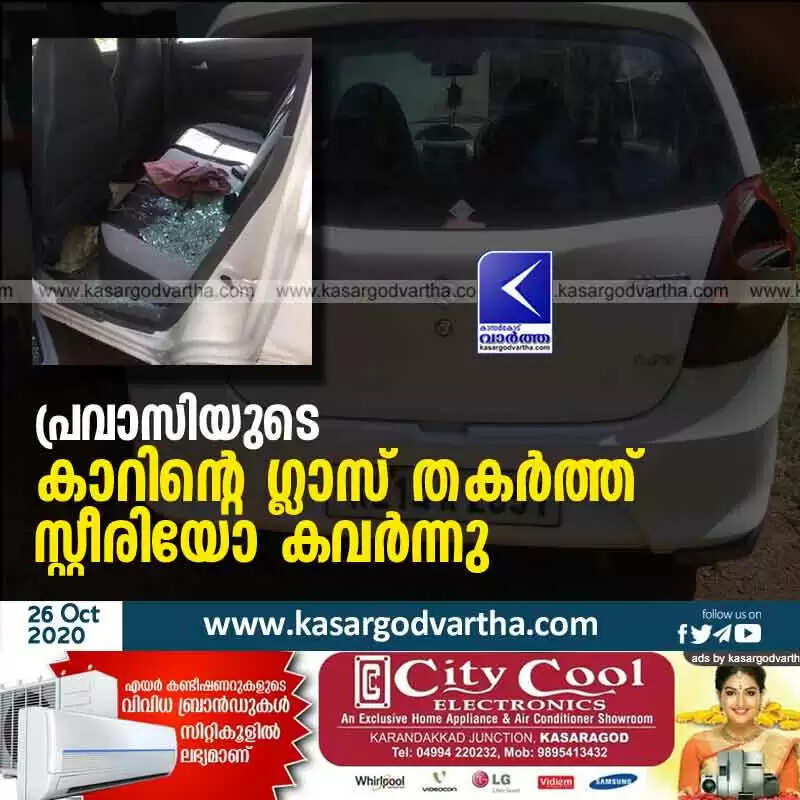 പ്രവാസിയുടെ കാറിൻ്റെ ഗ്ലാസ് തകർത്ത് സ്റ്റീരിയോ കവർന്നു