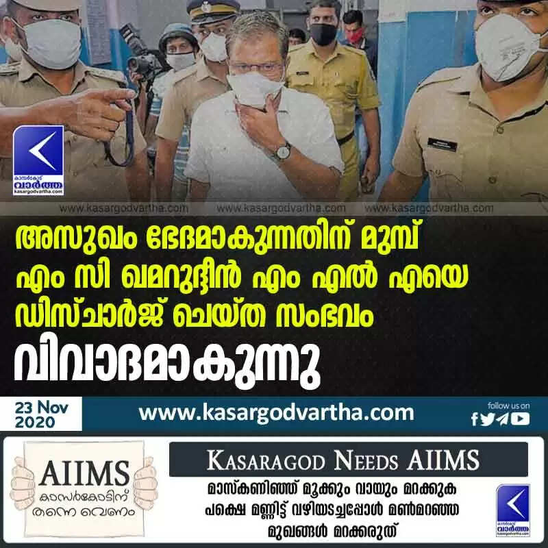 അസുഖം ഭേദമാകുന്നതിന് മുമ്പ് എം സി ഖമറുദ്ദീന് എം എല് എയെ ഡിസ്ചാര്ജ് ചെയ്ത സംഭവം വിവാദമാകുന്നു