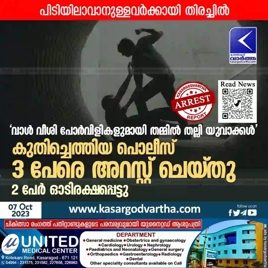 Arrested | 'വാൾ വീശി പോർവിളികളുമായി തമ്മിൽ തല്ലി യുവാക്കൾ'; കുതിച്ചെത്തിയ പൊലീസ് 3 പേരെ അറസ്റ്റ് ചെയ്തു; 2 പേർ ഓടിരക്ഷപ്പെട്ടു