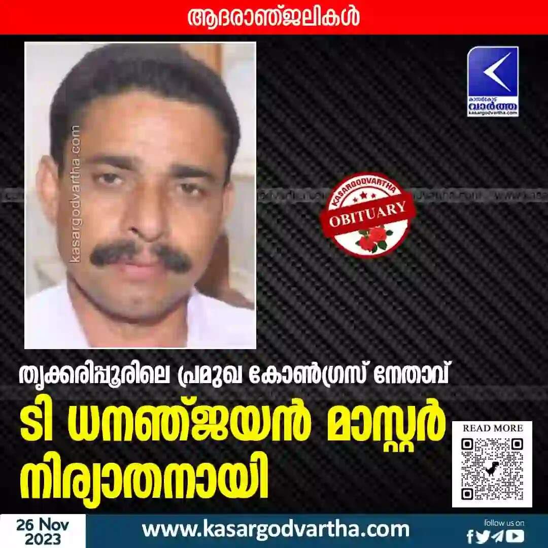 Keywords: News, Kerala, Kerala News, Obituary, Thrikaripur, Congress leader, Teacher, T Dhananjayan Master, Top-Headlines, Thrikaripur: Congress leader T Dhananjayan Master passed away. < !- START disable copy paste -->