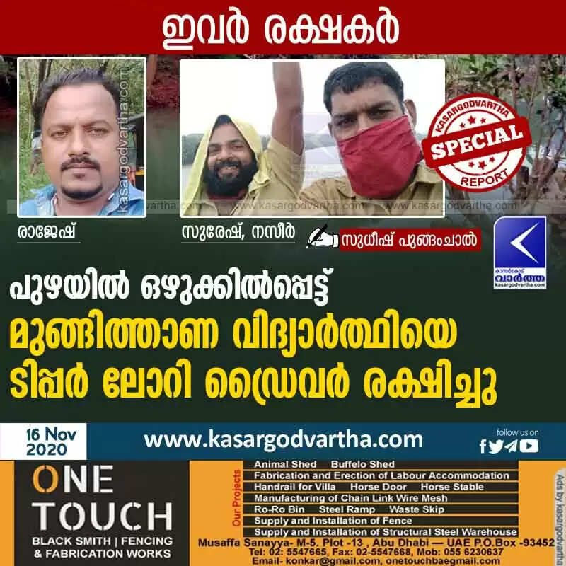 Keywords: Kasaragod, Kerala, News, Tipper lorry, Driver, Saved, Student, Vellarikundu, Top-Headlines, tipper lorry driver rescued the student who drowned in the river