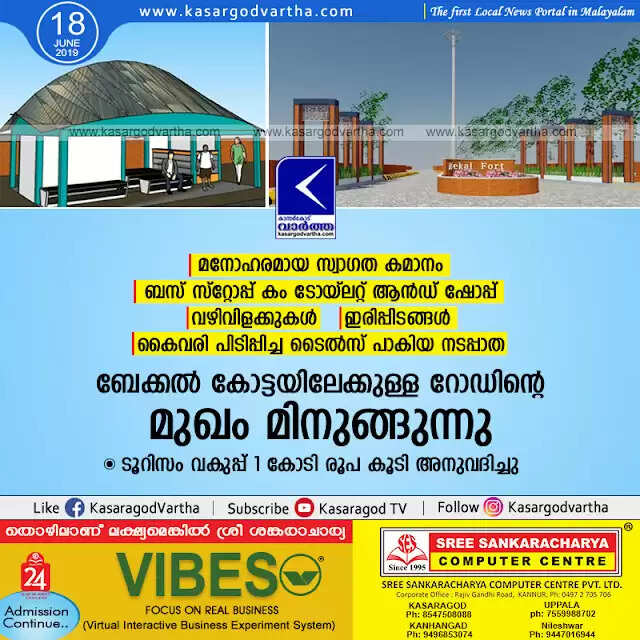 മനോഹരമായ സ്വാഗത കമാനം, ബസ് സ്റ്റോപ്പ് കം ടോയ്ലറ്റ് ആന്ഡ് ഷോപ്പ്, വഴിവിളക്കുകള്, ഇരിപ്പിടങ്ങള്; ബേക്കല് കോട്ടയിലേക്കുള്ള റോഡിന്റെ മുഖം മിനുങ്ങുന്നു, ടൂറിസം വകുപ്പ് 1 കോടി രൂപ അനുവദിച്ചു
