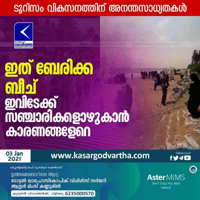 Keywords: Kerala, News, Kasaragod, Manjeshwaram, Ecotourism, Tourism, Top-Headlines, Sea, Tourist influx to Berika Beach: Locals call for tourism project.