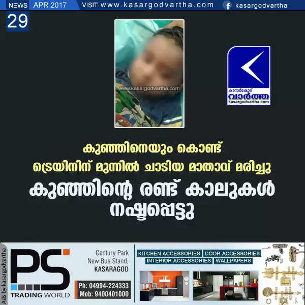 കുഞ്ഞിനെയും കൊണ്ട് ട്രെയിനിന് മുന്നില് ചാടിയ മാതാവ് മരിച്ചു; കുഞ്ഞിന്റെ രണ്ട് കാലുകള് നഷ്ടപ്പെട്ടു