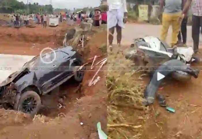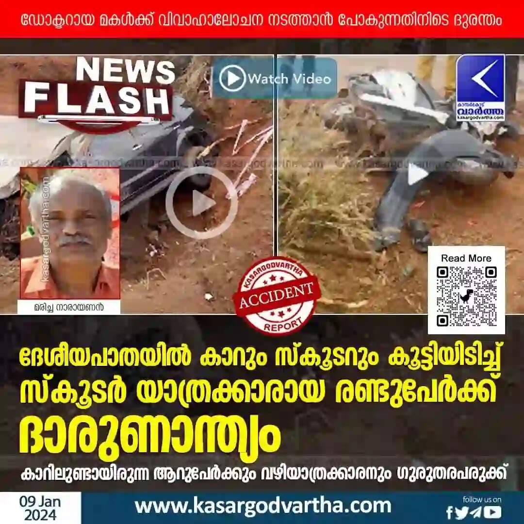 Accidental Death | ദേശീയപാതയില് കാറും സ്കൂടറും കൂട്ടിയിടിച്ച് ഇരുചക്ര വാഹന യാത്രക്കാരായ രണ്ട് പേര്ക്ക് ദാരുണാന്ത്യം; കാറിലുണ്ടായിരുന്ന ആറ് പേര്ക്കും വഴിയാത്രക്കാരനും ഗുരുതര പരുക്ക്