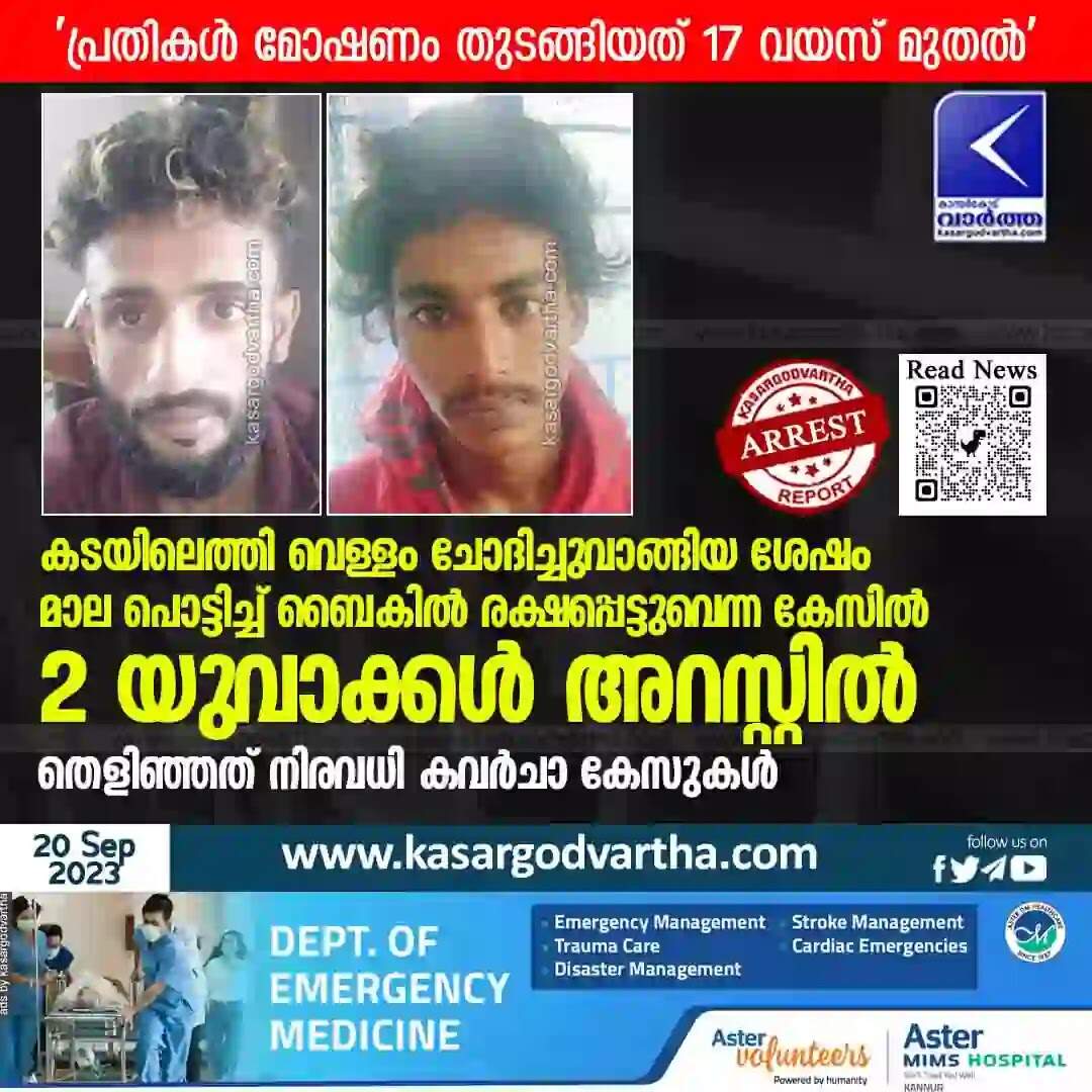 Arrested | കടയിലെത്തി വെള്ളം ചോദിച്ചുവാങ്ങിയ ശേഷം മാല പൊട്ടിച്ച് ബൈകിൽ രക്ഷപ്പെട്ടുവെന്ന കേസിൽ 2 യുവാക്കൾ അറസ്റ്റിൽ; 'തെളിഞ്ഞത് നിരവധി കവർചാ കേസുകൾ; പ്രതികൾ മോഷണം തുടങ്ങിയത് 17 വയസ് മുതൽ'
