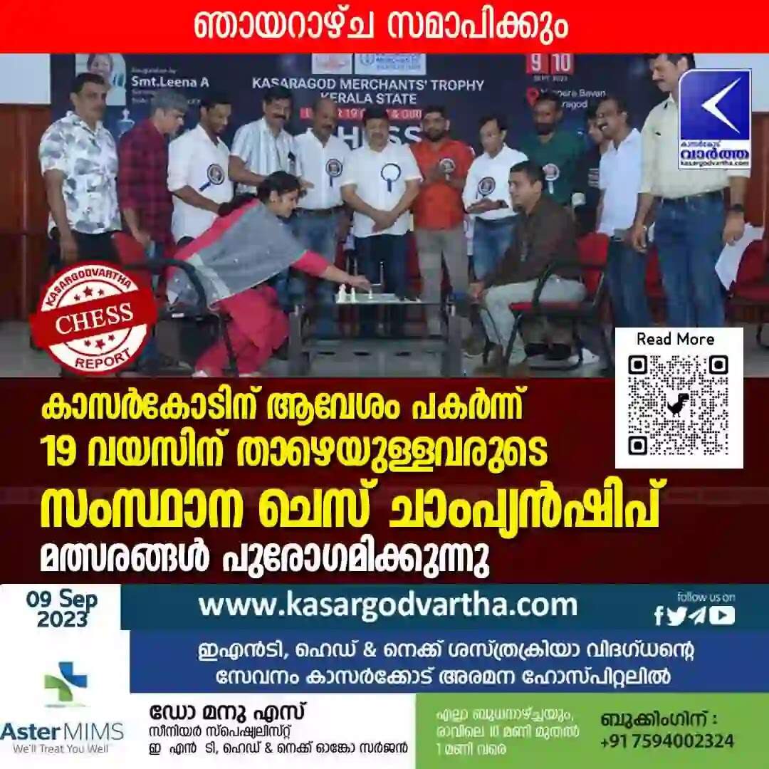 Chess | കാസർകോടിന് ആവേശം പകർന്ന് 19 വയസിന് താഴെയുള്ളവരുടെ സംസ്ഥാന ചെസ് ചാംപ്യൻഷിപ്; മത്സരങ്ങൾ പുരോഗമിക്കുന്നു; ഞായറാഴ്ച സമാപിക്കും