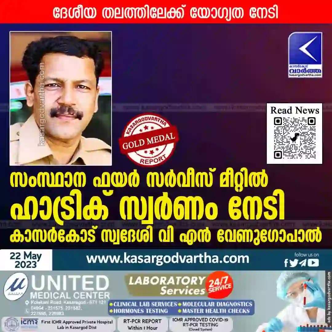 Gold Medals | സംസ്ഥാന ഫയർ സർവീസ് മീറ്റിൽ ഹാട്രിക് സ്വർണം നേടി കാസർകോട് സ്വദേശി വി എൻ വേണുഗോപാൽ