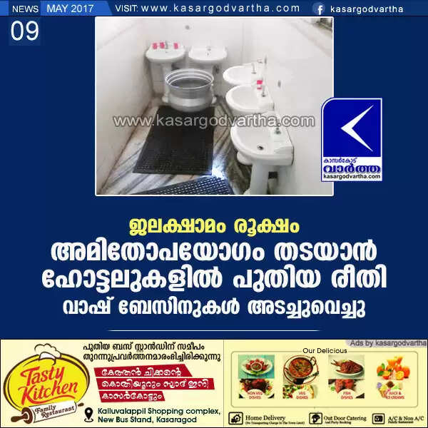 Keywords: Kerala, Kasaragod, News, Hotel, Water, Food, Rain, Wash basin, Water shortage; Wash basin taps closed.