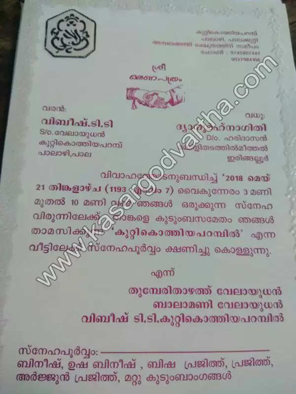 വിവാഹ ക്ഷണിക്കത്താണ് ഇപ്പോള് ഇരു കുടുംബങ്ങളുടെയും ഫോണുകള്ക്ക് ഇരിക്കപ്പൊറുതി ഇല്ലാതാക്കിയിരിക്കുന്നത്. 'വധുവിന്റെ പേര് വായിച്ചാല് മാത്രം കല്ല്യാണത്തിന് കൂടാം' എന്ന തലക്കെട്ടോടെയാണ് കത്ത് സോഷ്യല് മീഡിയയില് പ്രചരിച്ചത്. ഇതോടെ അന്വേഷണങ്ങളുടെ ബഹളമാണെന്നും ഫോണെടുക്കാനേ സമയമുള്ളൂവെന്നും ഇരു വീട്ടുകാരും പറയുന്നു. ചിലര് വിബീഷിനെ വിളിച്ച് തെറി വിളിക്കുന്നുമുണ്ട്. എന്തായാലും ഫോണ് കോളില് പൊറുതിമുട്ടി പോലീസിന് പരാതി നല്ക്കാന് ആലോചിക്കുകയാണ് ഇപ്പോള് വിബീഷും കുടുംബവും.