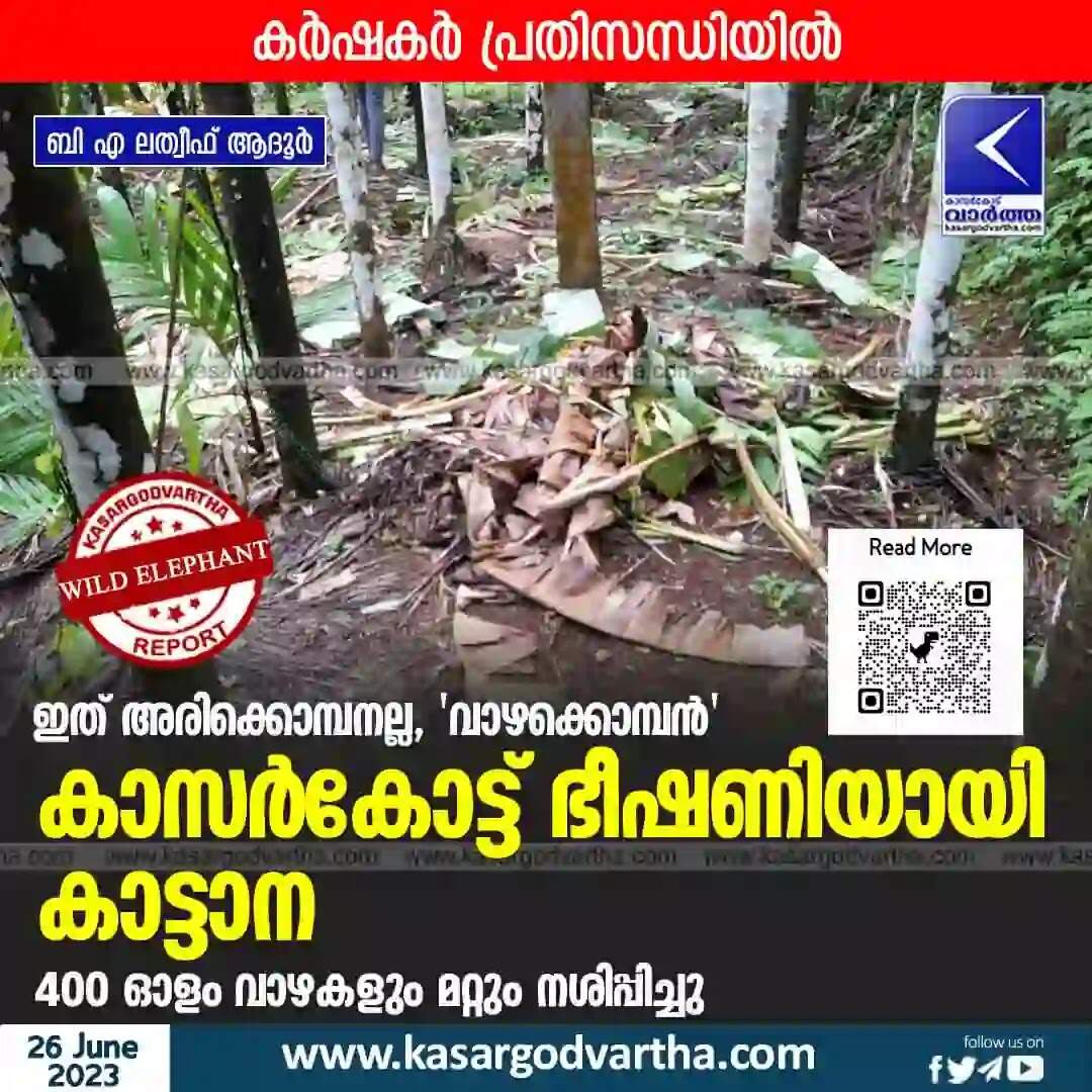 Wild elephant | ഇത് അരിക്കൊമ്പനല്ല, 'വാഴക്കൊമ്പൻ'; കാസർകോട്ട് ഭീഷണിയായി കാട്ടാന; 400 ഓളം വാഴകളും മറ്റും നശിപ്പിച്ചു; കർഷകർ പ്രതിസന്ധിയിൽ