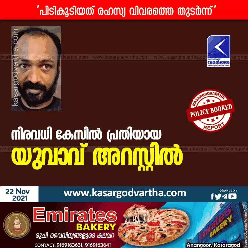 കാസർകോട് ഇൻസ്പെക്ടർ പി അജിത്കുമാറിൻ്റെ നിർദേശത്തെ തുടർന്ന് ക്രൈം എസ് ഐ ഇ അശോകൻ, എസ് ഐ കൃഷ്ണൻ കൊട്ടിലക്കണ്ടി, എസ് സി പി ഒമാരായ കെ ബാബുരാജ്, ബിജേഷ്, സി പി ഒ ജെയിംസ് എന്നിവരടങ്ങിയ സംഘമാണ് പിടികൂടിയത്. കോടതിയിൽ ഹാജരാക്കുമെന്ന് പൊലീസ് അറിയിച്ചു.