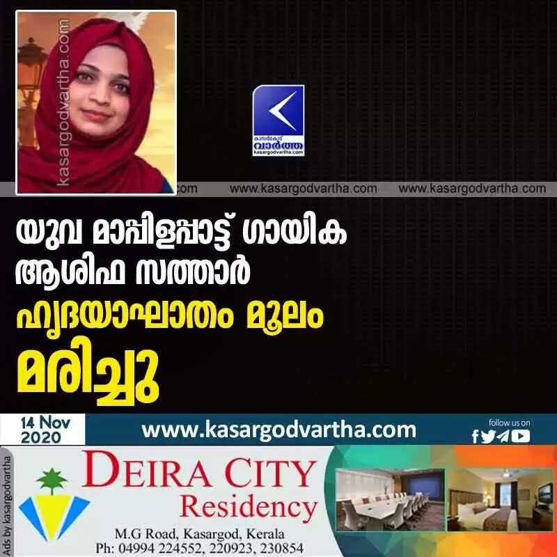 യുവ മാപ്പിളപ്പാട്ട് ഗായിക ആശിഫ സത്താര് ഹൃദയാഘാതം മൂലം മരിച്ചു