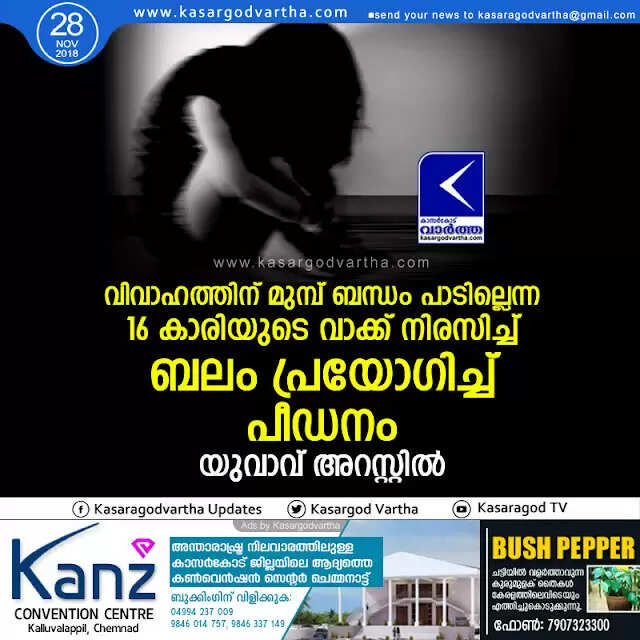വിവാഹത്തിന് മുമ്പ് ബന്ധം പാടില്ലെന്ന 16 കാരിയുടെ വാക്ക് നിരസിച്ച് ബലം പ്രയോഗിച്ച് പീഡനം; യുവാവ് അറസ്റ്റില്‍