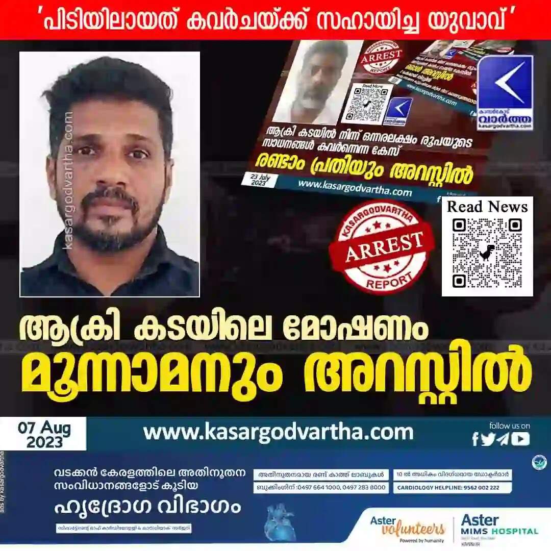 Arrested | ആക്രി കടയിലെ മോഷണം: മൂന്നാമനും അറസ്റ്റിൽ; 'പിടിയിലായത് കവർചയ്ക്ക് സഹായിച്ച യുവാവ്'