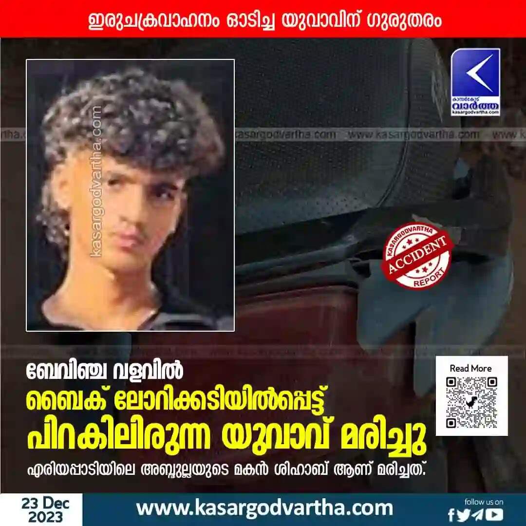 Accident | ബേവിഞ്ച വളവില് ബൈക് ലോറിക്കടിയില്പ്പെട്ട് പിറകിലിരുന്ന വിദ്യാർഥി മരിച്ചു; ഇരുചക്രവാഹനം ഓടിച്ച യുവാവിന് ഗുരുതരം