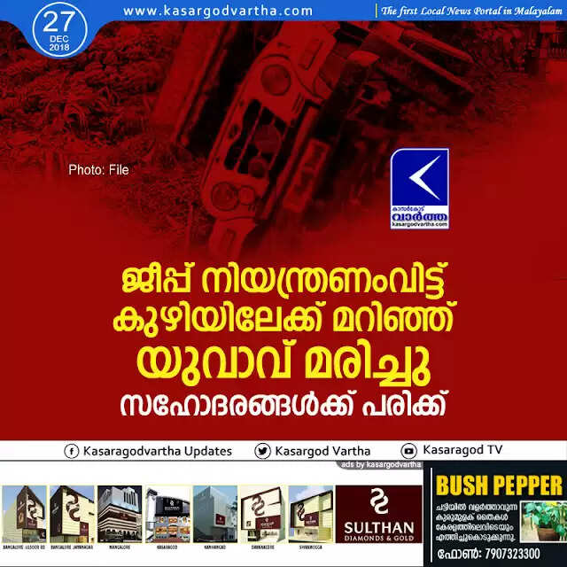 ജീപ്പ് നിയന്ത്രണംവിട്ട് കുഴിയിലേക്ക് മറിഞ്ഞ് യുവാവ് മരിച്ചു; സഹോദരങ്ങള്ക്ക് പരിക്ക്
