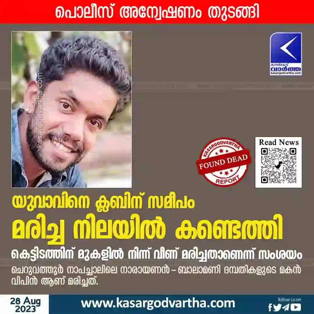 ഞായറാഴ്ച രാത്രി 11 മണിക്കും തിങ്കളാഴ്ച പുലർചെ 6.45നും ഇടയിലാണ് സംഭവമെന്ന് ചന്തേര പൊലീസ് പറഞ്ഞു. നാപച്ചാലിലെ വി വി സ്‌മാരക മന്ദിരത്തിന്റെ മുകളിൽ നിന്നാണ് യുവാവ് താഴെ വീണത്. അബദ്ധത്തിൽ താഴെ വീണ് മരിച്ചതായാണ് സംശയിക്കുന്നത്.