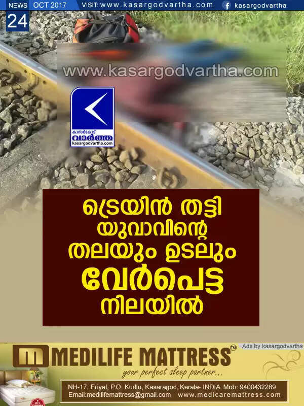 Keywords: Kasaragod, Cheruvathur, Train, Death, Youth, News, Railway, Police, Investigation, Youth found dead in railway track.