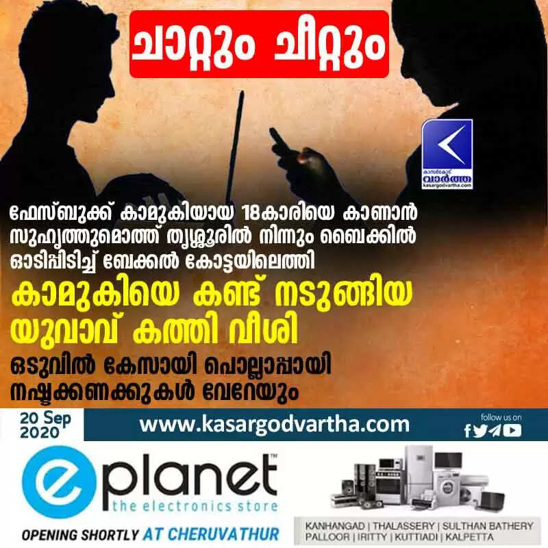 ഫേസ്ബുക്ക് കാമുകിയായ 18കാരിയെ കാണാൻ സുഹൃത്തുമൊത്ത് തൃശ്ശൂരിൽ നിന്നും ബൈക്കിൽ ഓടിപ്പിടിച്ച് ബേക്കൽ കോട്ടയിലെത്തി; കാമുകിയെ കണ്ട് നടുങ്ങിയ യുവാവ് കത്തി വീശി, ഒടുവിൽ കേസായി പൊല്ലാപ്പായി