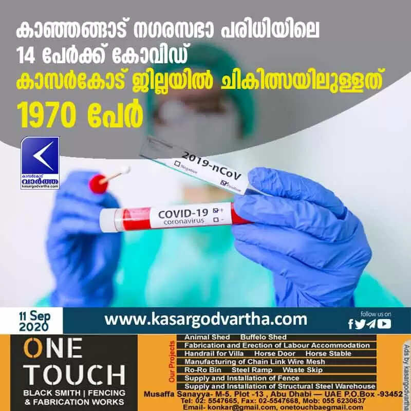 കാഞ്ഞങ്ങാട് നഗരസഭാ പരിധിയിലെ 14 പേർക്ക് കോവിഡ് കാസർകോട് ജില്ലയിൽ ചികിത്സയിലുള്ളത് 1970 പേർ