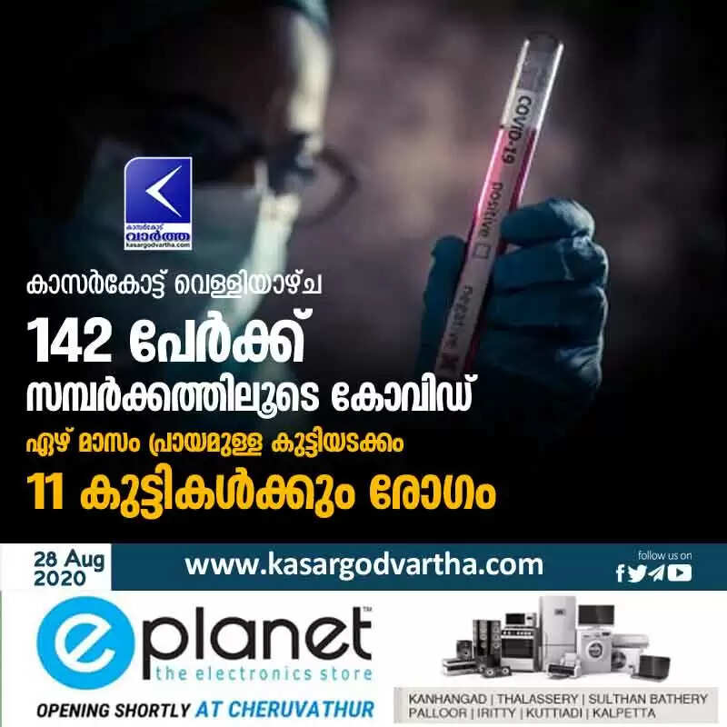 കാസർകോട്ട് വെള്ളിയാഴ്ച 142 പേർക്ക് സമ്പർക്കത്തിലൂടെ കോവിഡ്; ഏഴ് മാസം പ്രായമുള്ള കുട്ടിയടക്കം 11 കുട്ടികൾക്കും രോഗം