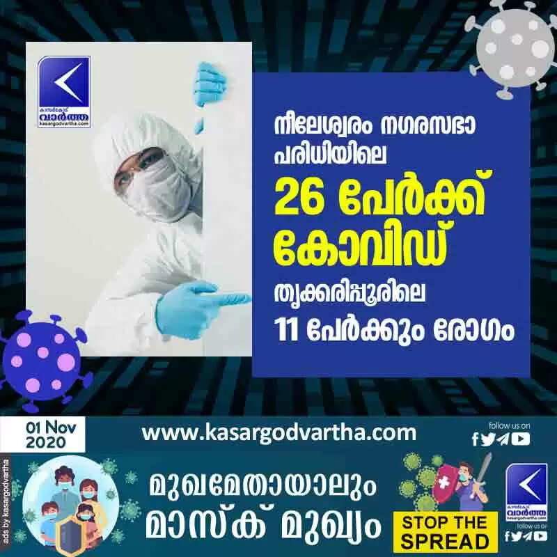 നീലേശ്വരം നഗരസഭാ പരിധിയിലെ 26 പേര്ക്ക് കോവിഡ്; തൃക്കരിപ്പൂരിലെ 11 പേര്ക്കും രോഗം