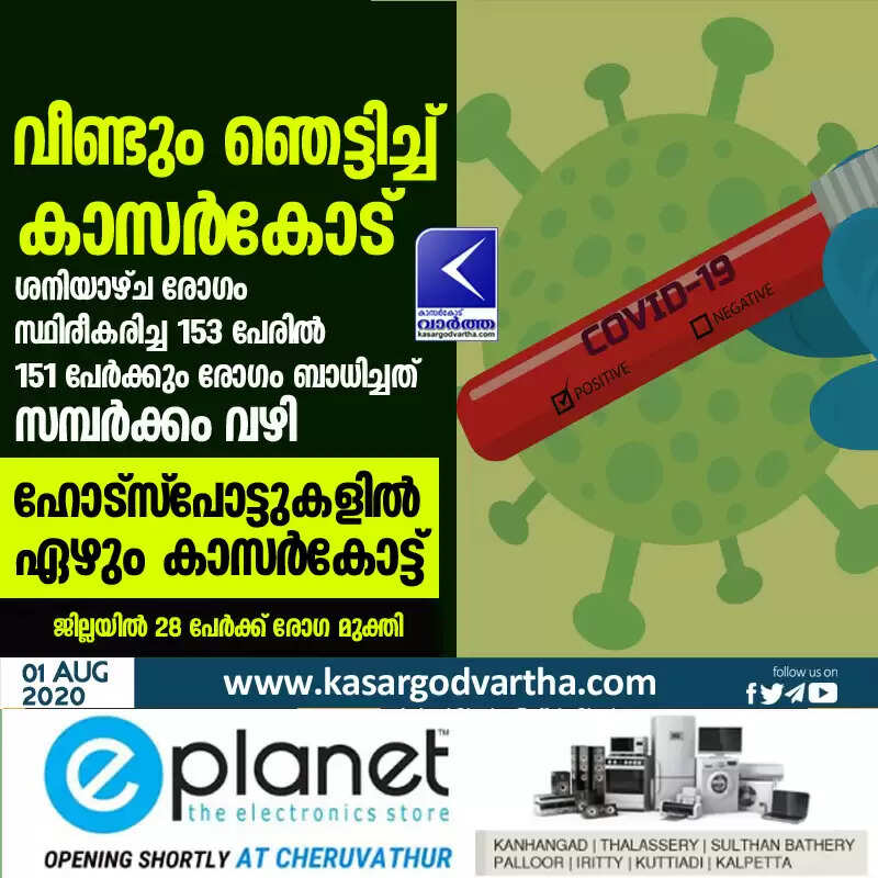 Keywords: Kasaragod, Kerala, News, District, COVID-19, Top-Headlines, Trending, 153 COVID positive cases in Kasaragod