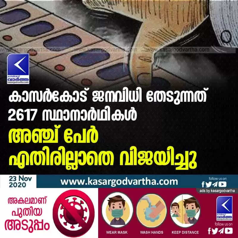 കാസര്കോട് ജനവിധി തേടുന്നത് 2617 സ്ഥാനാര്ഥികള്; അഞ്ച് പേര് എതിരില്ലാതെ വിജയിച്ചു