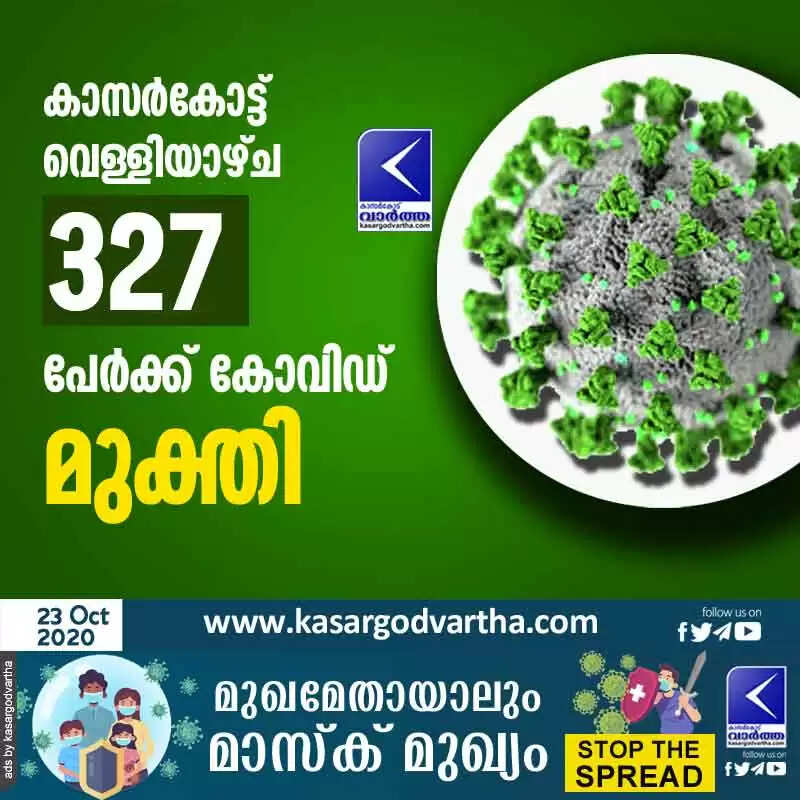 കാസർകോട്ട് വെള്ളിയാഴ്ച 327 പേര്‍ക്ക് കോവിഡ് മുക്തി