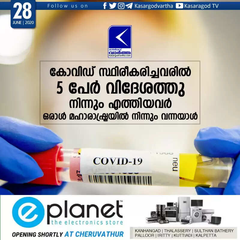 കോവിഡ് സ്ഥിരീകരിച്ചവരില് 5 പേര് വിദേശത്തു നിന്നും എത്തിയവര്; ഒരാള് മഹാരാഷ്ട്രയില് നിന്നും വന്നയാള്
