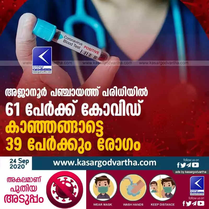 Keywords: Kasaragod, Kerala, News, COVID-19, Case, Report, Trending, 61 Positive cases at Ajanoor Panchayath; 39 at Kanhangad