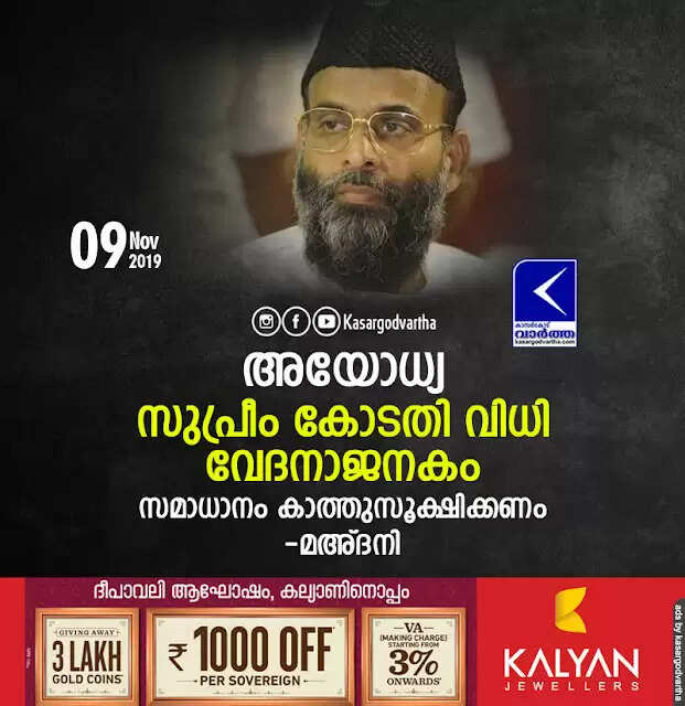 Keywords:  News, Top-Headlines, Trending, court, ദേശീയം, National, Abdul Nasar Madani on Ayodhya Verdict