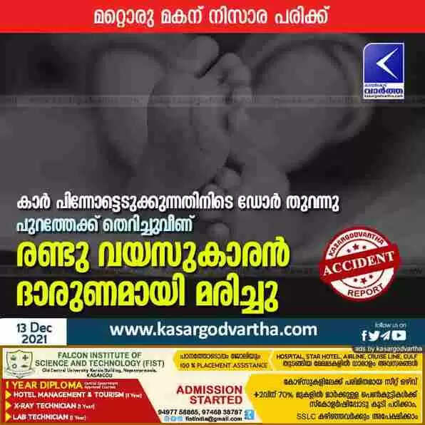 കാർ പിന്നോട്ടെടുക്കുന്നതിനിടെ ഡോർ തുറന്നു; പുറത്തേക്ക് തെറിച്ചുവീണ് രണ്ടു വയസുകാരൻ ദാരുണമായി മരിച്ചു