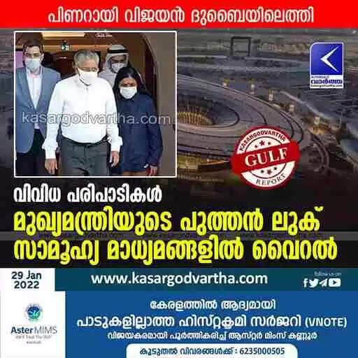 അമേരികയിൽ നിന്നും നാട്ടിലെത്തിയതിനു ശേഷമായിരിക്കും കേരള പവലിയൻ ഉദ്ഘാടനത്തിനും മറ്റു പരിപാടികളിൽ പങ്കെടുക്കുന്നതിനും മുഖ്യമന്ത്രി യുഎഇയിൽ എത്തുക എന്നാണ് കരുതിയിരുന്നത്. എന്നാൽ നേരിട്ട് ദുബൈയിൽ എത്തുകയായിരുന്നു. അതിനിടെ പാന്റും കുപ്പായവും ധരിച്ചുള്ള മുഖ്യമന്ത്രിയുടെ പുതിയ ലുകും സാമൂഹ്യ മാധ്യമങ്ങളിൽ വൈറലായി. അനവധി പേരാണ് ഇതിന്റെ ചിത്രങ്ങളും വീഡിയോയും ഷെയർ ചെയ്യുന്നത്.