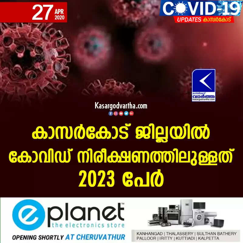 കാസര്കോട് ജില്ലയില് കോവിഡ് നിരീക്ഷണത്തിലുള്ളത് 2023 പേര്