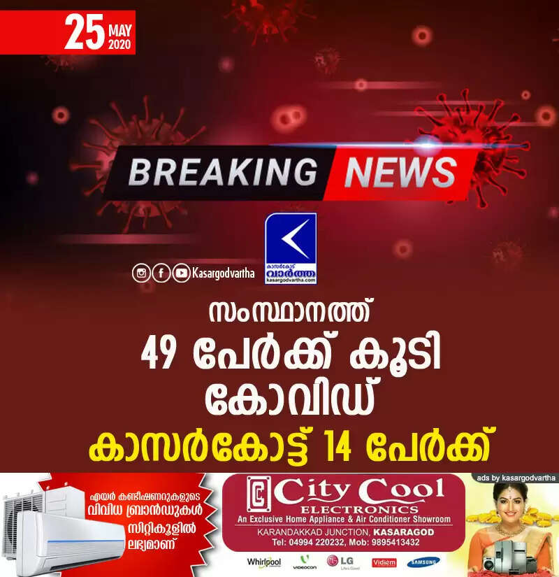 സംസ്ഥാനത്ത് 49 പേര്ക്ക് കൂടി കോവിഡ്; കാസര്കോട്ട് 14 പേര്ക്ക്