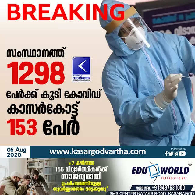 സംസ്ഥാനത്ത് 1298 പേര്ക്ക് കൂടി കോവിഡ്; കാസര്കോട്ട് 153 പേര്