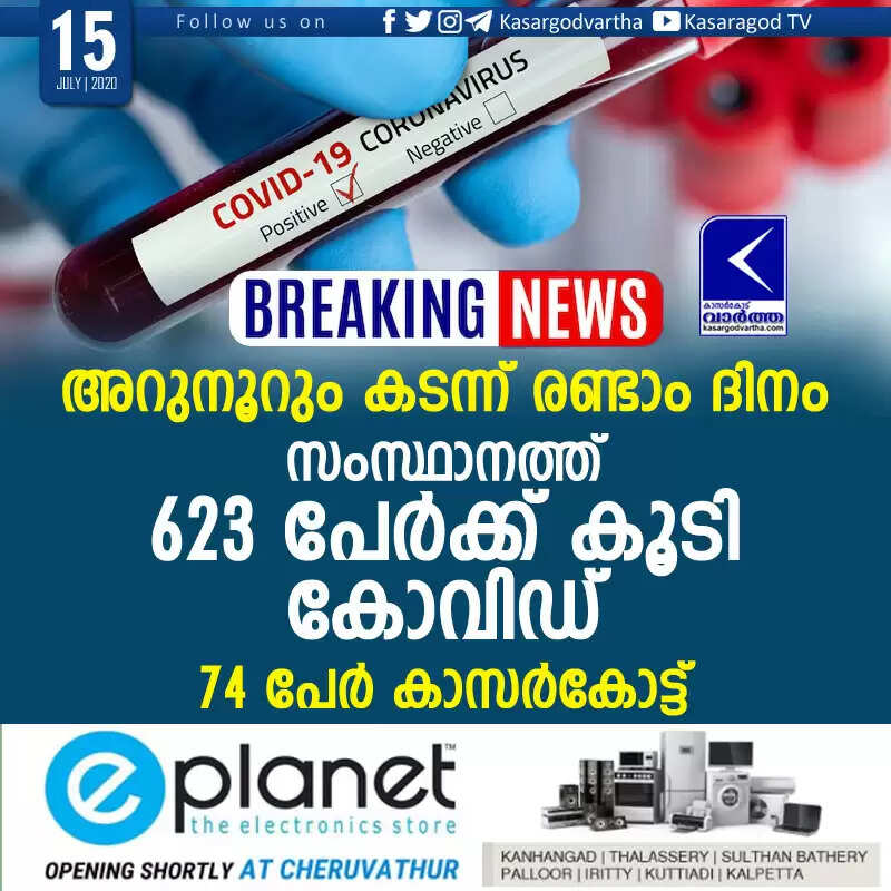 അറുനൂറും കടന്ന് രണ്ടാം ദിനം; സംസ്ഥാനത്ത് 623 പേര്ക്ക് കൂടി കോവിഡ്; 74 പേര് കാസര്കോട്ട്