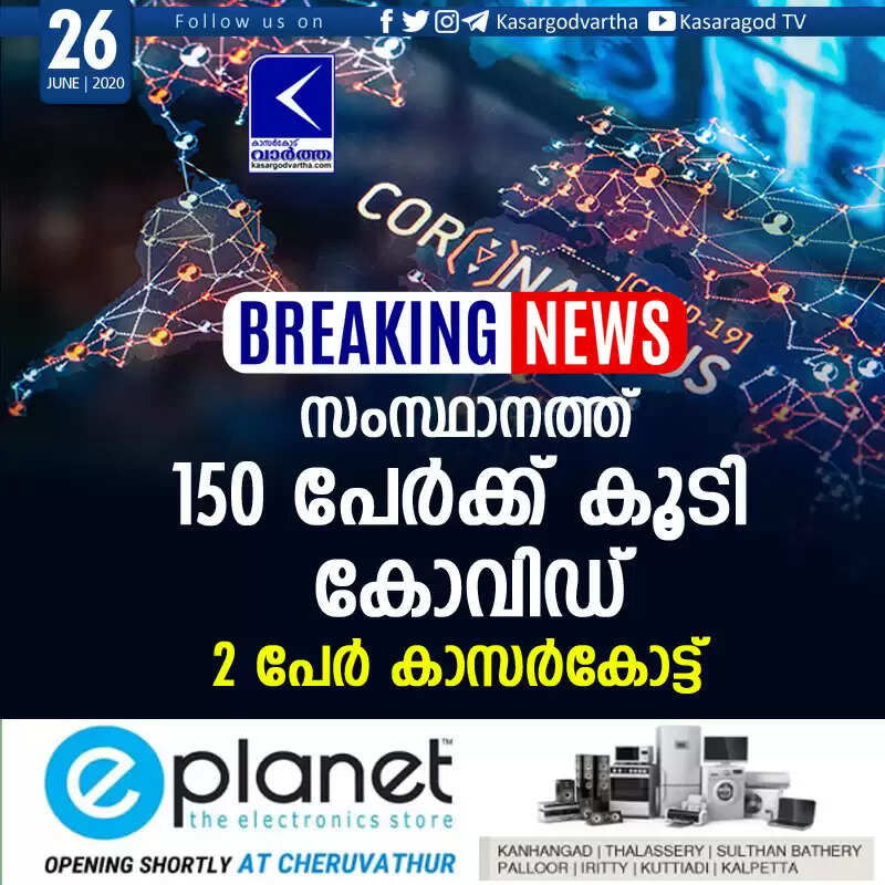 സംസ്ഥാനത്ത് 150 പേര്ക്ക് കൂടി കോവിഡ്; 2 പേര് കാസര്കോട്ട്